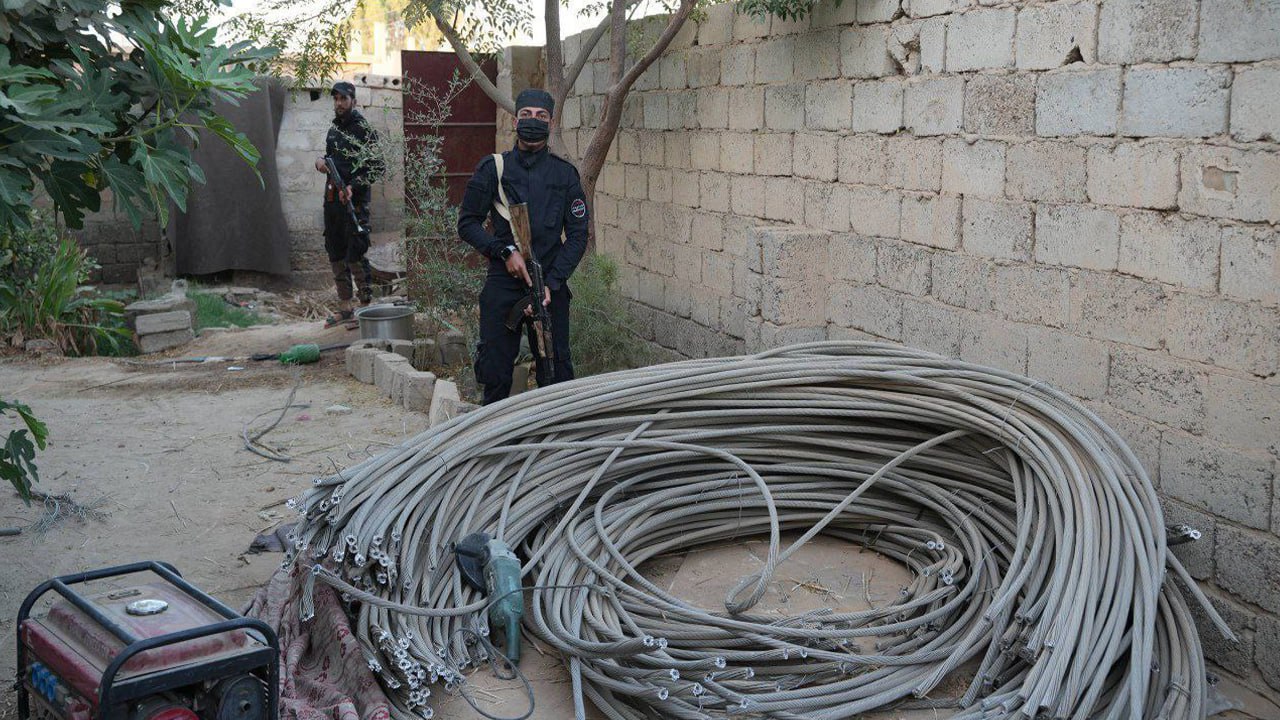 The Directorate of Internal Security in the Al-Mayadin area, in cooperation with Special Task Forces, carried out a targeted raid on a hideout belonging to a gang specializing in the theft of electrical cables in the town of Al-Taybah, in the eastern countryside of Deir Ezzor.